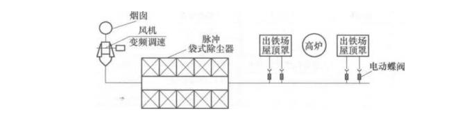 应用较为普遍的“二次烟尘”捕集方式,是在一次烟尘除尘系统的基础上增设屋顶大罩,并适当围封出铁场周边,形成二次烟尘除尘系统.